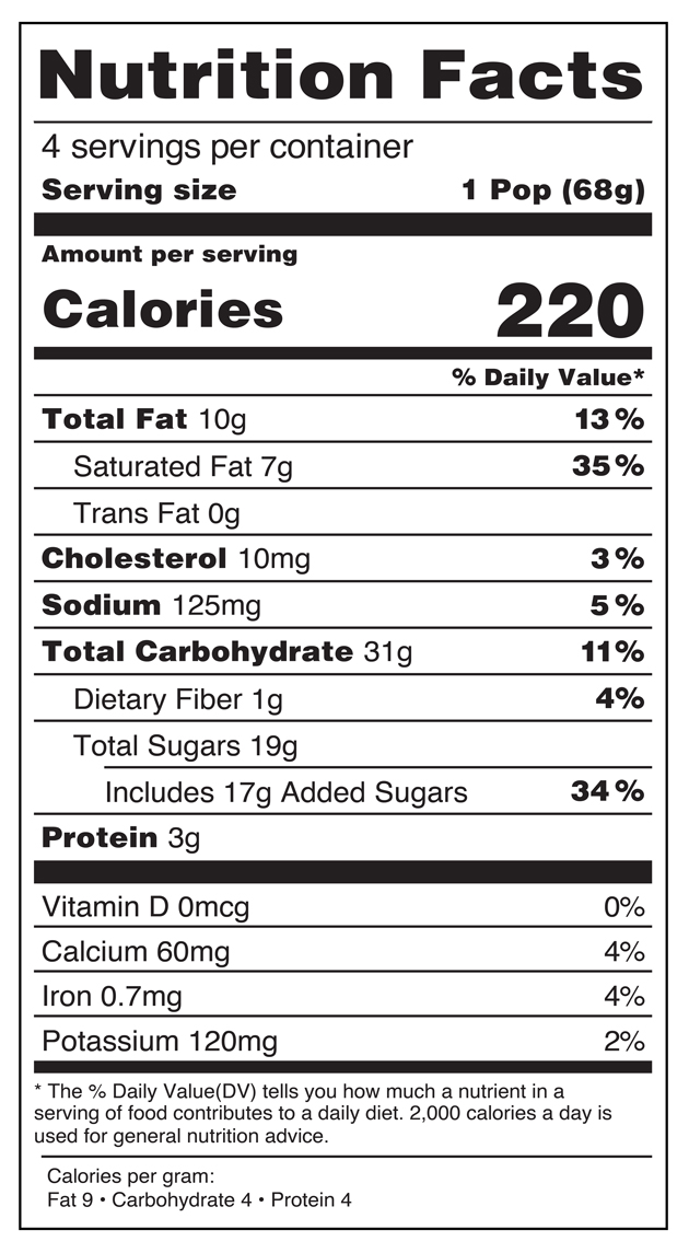 INGREDIENTS: Whole Milk, Chocolaty Coating (Sugar, Coconut Oil, Cocoa Powder, Chocolate Liquor, Nonfat Dry Milk, Milkfat, Cocoa Powder (processed with alkali), Soy Lecithin, Salt, Vanilla), Wafer (Wheat Flour, Sugar, Graham Flour, Palm Oil, Contains 2% or less of the following: Molasses, Corn Syrup, Modified Corn Starch, Salt, Soy Lecithin, Caramel Color, High Fructose Corn Syrup, Baking Soda, Natural Flavor), Liquid Sugar (Sugar, Corn Syrup), Cream, Waffle Cone Pieces (Bleached Wheat Flour, Sugar, Molasses, Canola Oil, Salt, Soy Lecithin, Caramel Color), Salty Caramel Swirl (Corn Syrup, Water, Sweetened Condensed Skim Milk, Sugar, Modified Food Starch, Contains 2% or less of the following: Butter, Salt, Mono & Diglycerides, Potassium Sorbate (Preservative), Sodium Bicarbonate, Sodium Alginate, Natural Flavor), Skim Milk, Stabilizer (Cellulose Gel, Cellulose Gum, Mono and Diglycerides, Polysorbate 80, Carrageenan, Dextrose, Salt), Vanilla Extract.